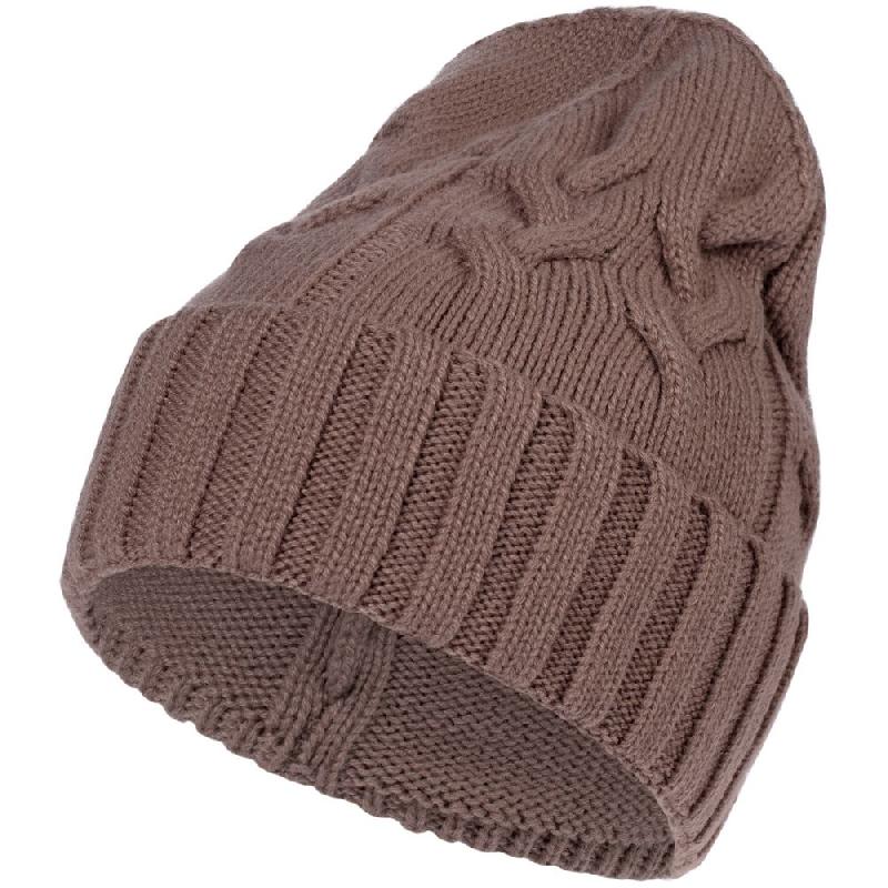 Мягкая удлиненная женская шапка объемной вязки Loren — уютный вариант для создания современного городского образа.