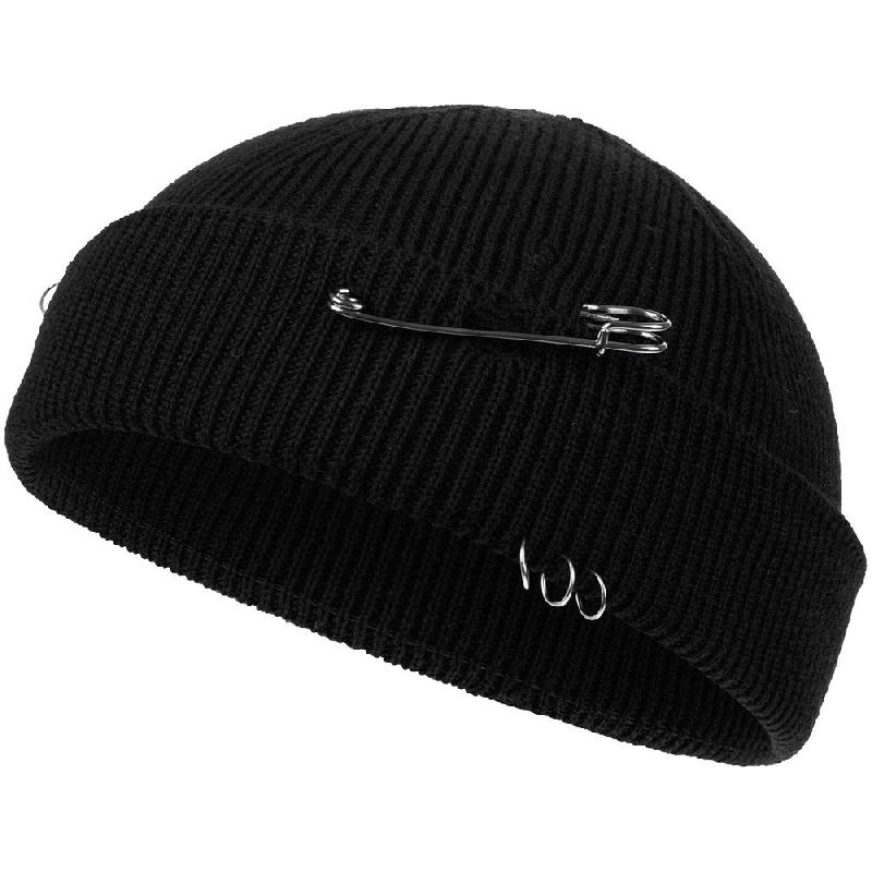 Однослойная шапка бини с рваным отворотом и металлическими аксессуарами для дерзких образов в любом возрасте. Яркий и запоминающийся акцент в стиле гранж.