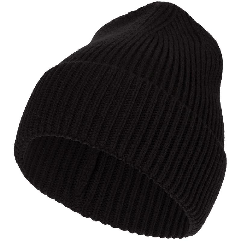 Однослойная шапка рельефной вязки с отворотом.