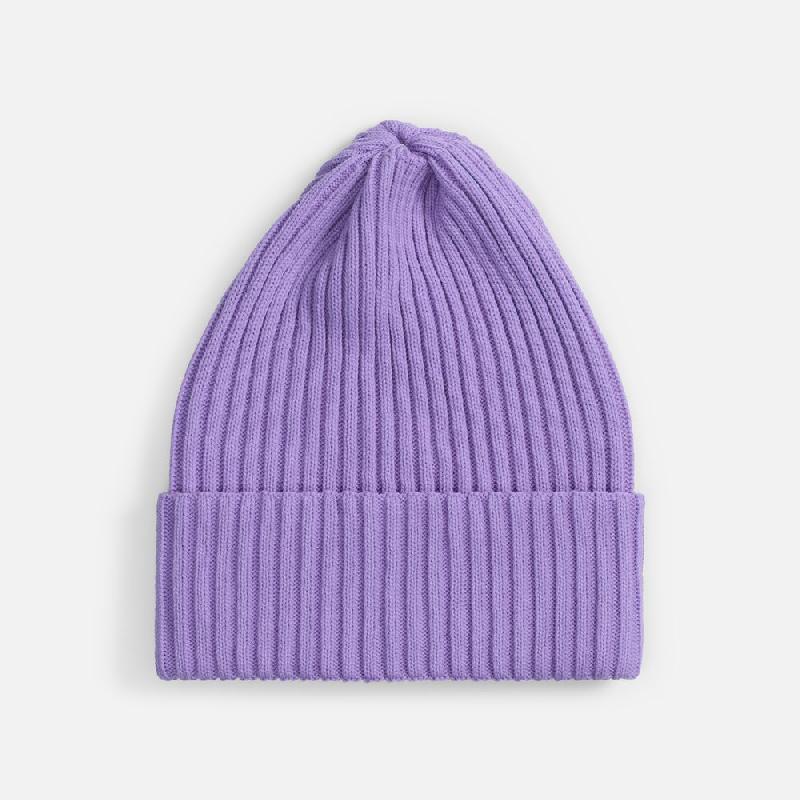 Однослойная шапка фактурной вязки с двойным отворотом.