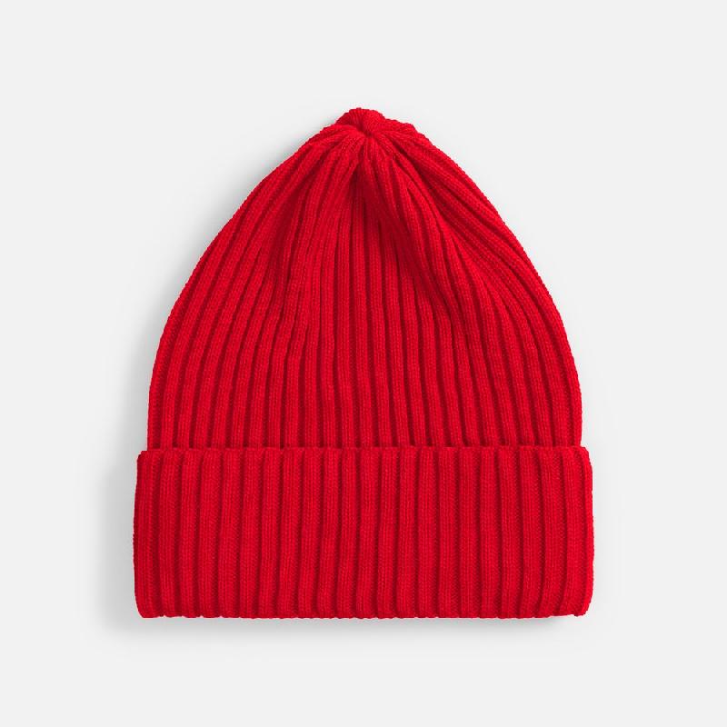 Однослойная шапка фактурной вязки с двойным отворотом.